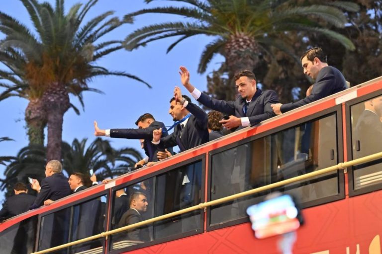 وجاب موكب الحافلة المكشوفة لـ”أشبال الأطلس”، المزيّنة بالألوان الوطنية، شوارع العاصمة وسط هتافات جماهيرية وأهازيج شعبية وزغاريد، فيما ازدانت شرفات المباني بالأعلام الوطنية، تعبيرا عن الفرحة بهذا الإنجاز العالمي.